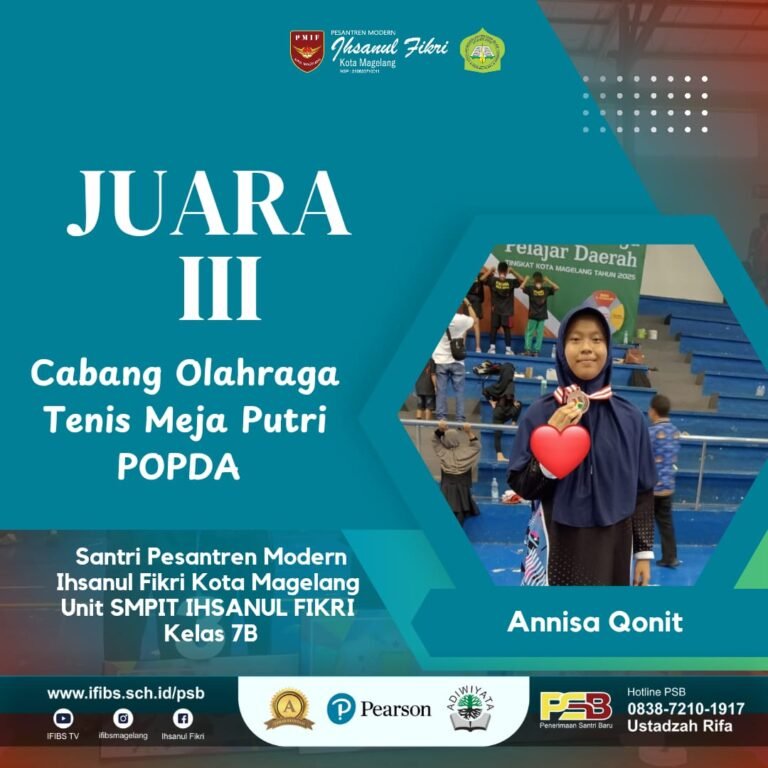 Magelang, 26 Februari 2025 – Prestasi gemilang diraih oleh Hasna Almira, siswa kelas 8 SMPIT Ihsanul Fikri Kota Magelang, yang berhasil meraih medali perak di ajang Olimpiade Sains yang diselenggarakan oleh JSIT Indonesia Wilayah Jawa Tengah. Kegiatan ini merupakan salah…